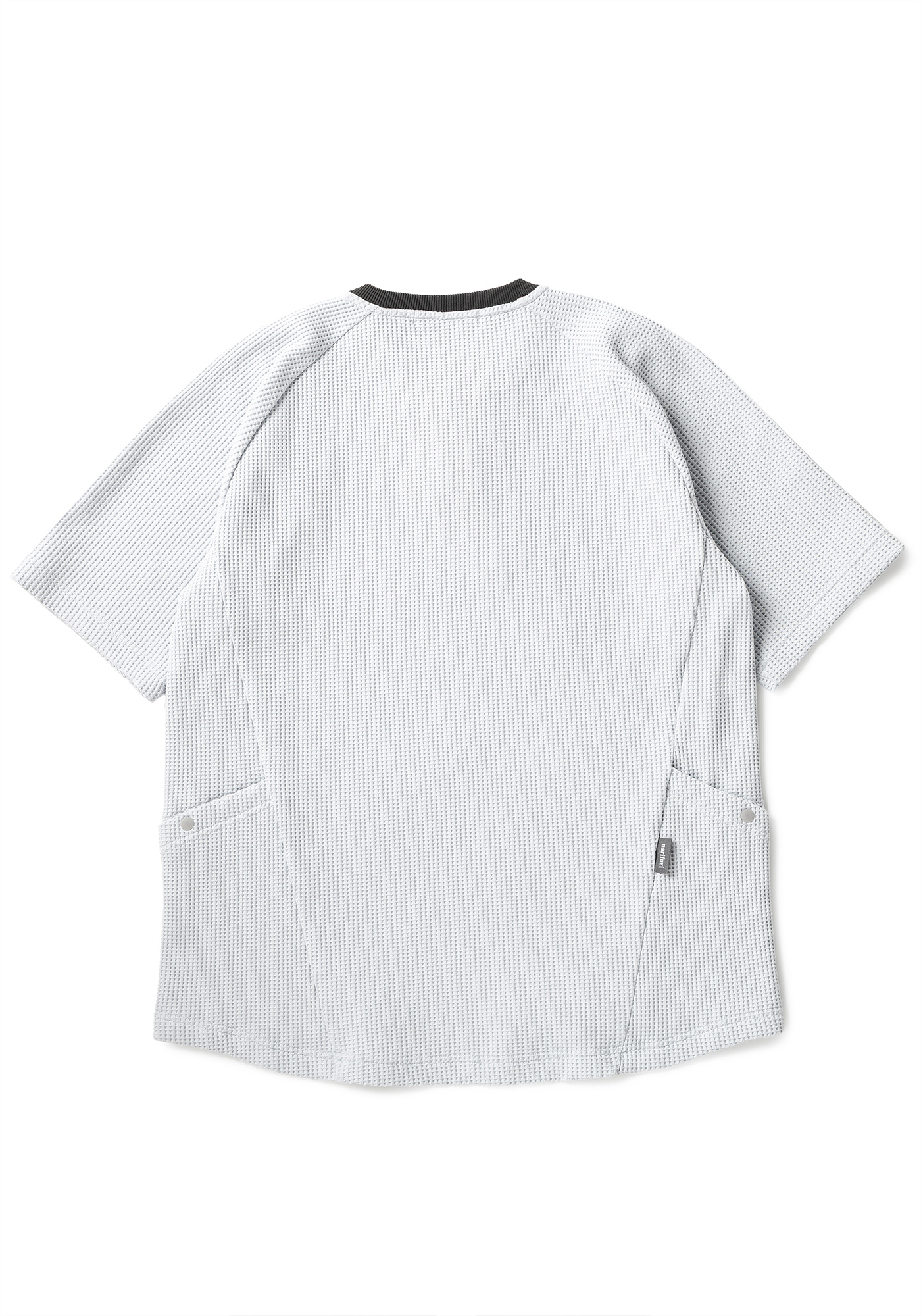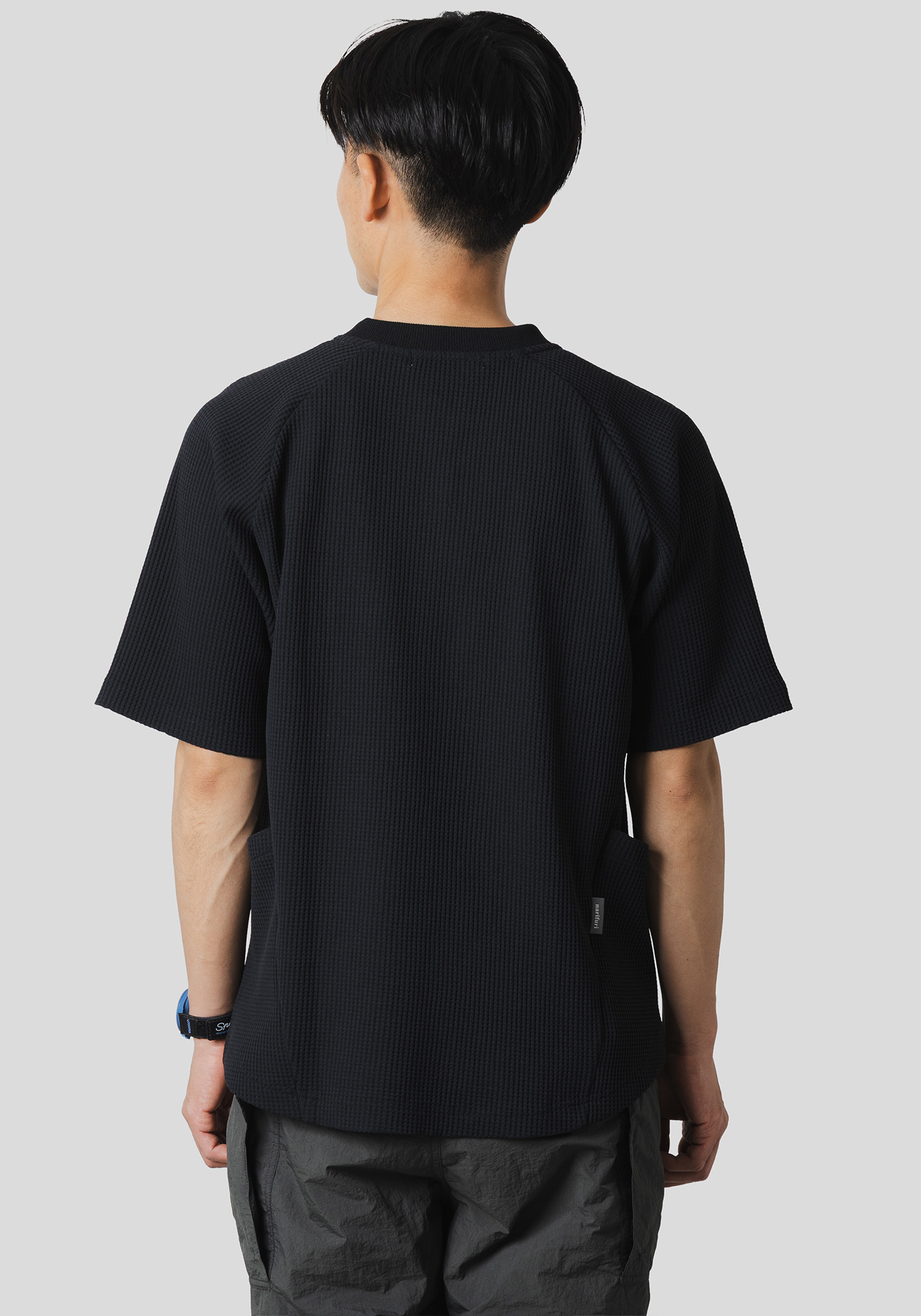 凹凸のあるワッフル組織により無地ながら存在感のある雰囲気に仕上がっており、一般的なTシャツと差別化を図っています。