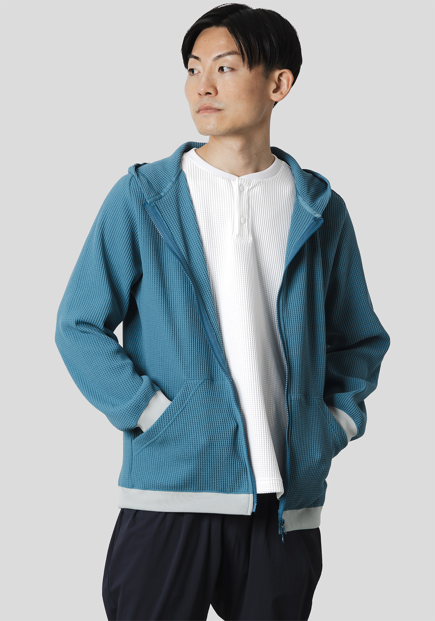 ●軽量で吸汗速乾性・UVカット・ストレッチ性に優れる高機能ポリエステルワッフル生地 (SOLOTEX糸使用)