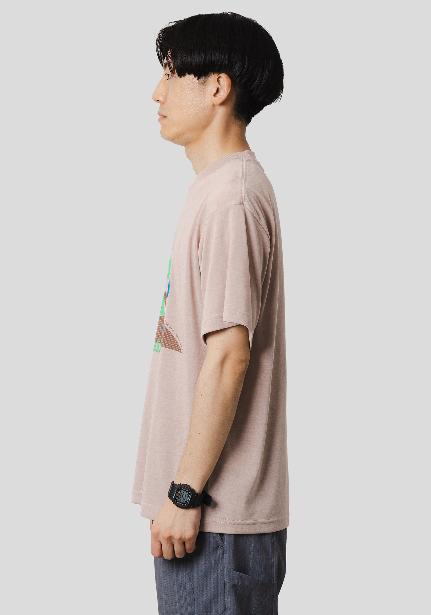 2Pの1枚には、80's~90'sのプリントTシャツからインスパイアされた蛍光インクを使用した、WONDER WORKS 清水裕紀子氏よるオリジナルプリント入り。