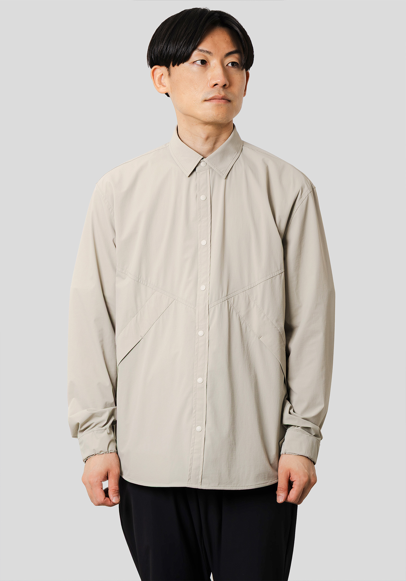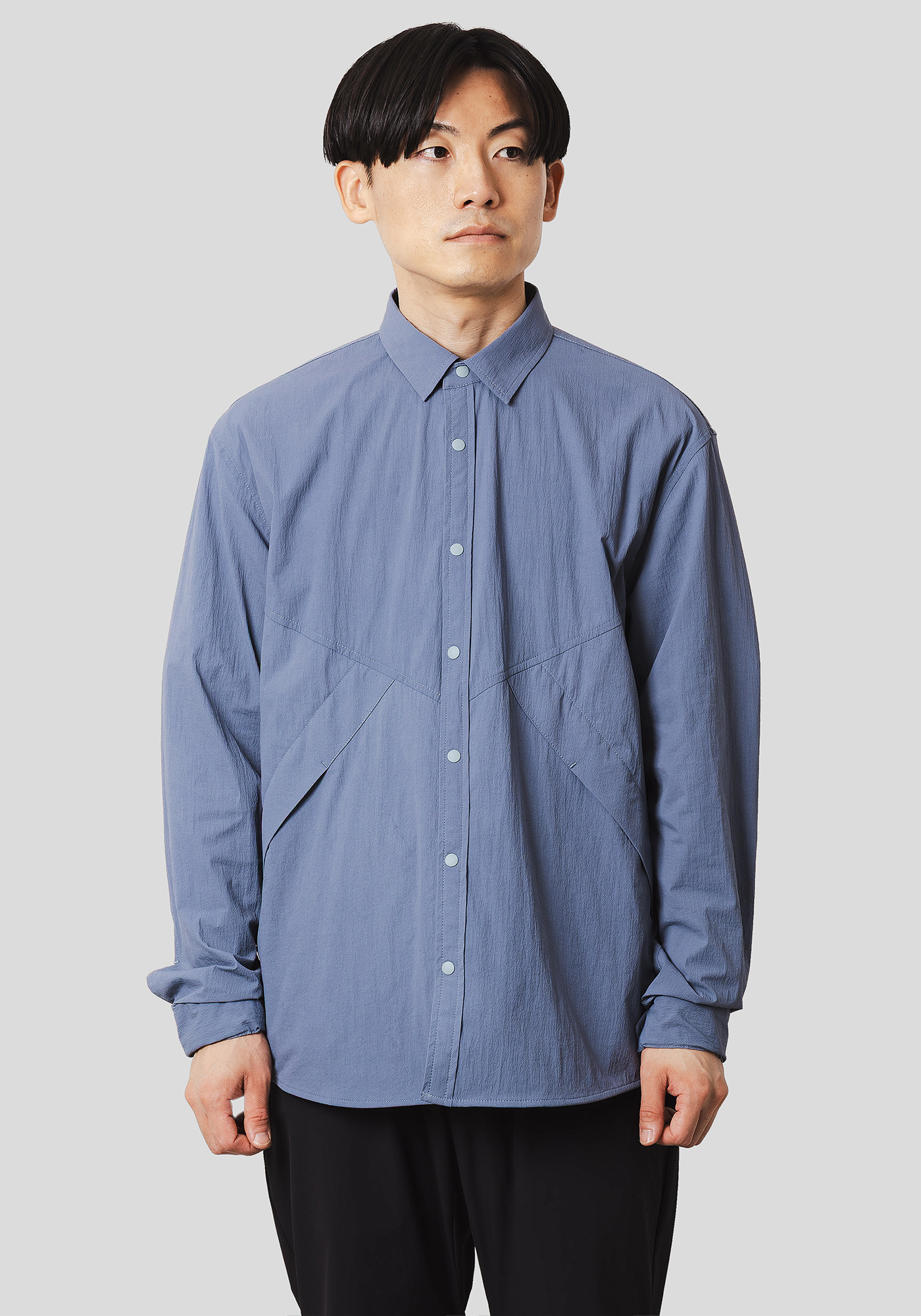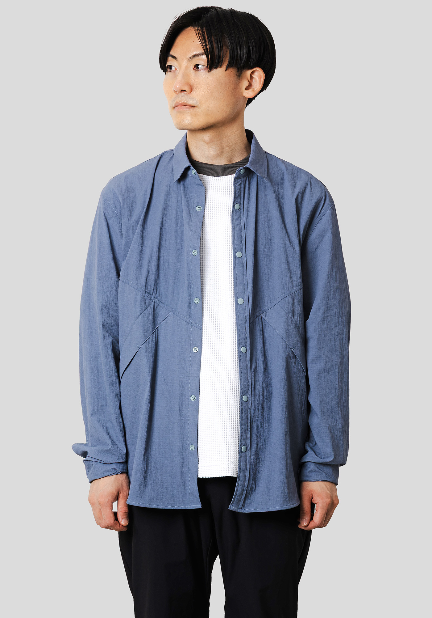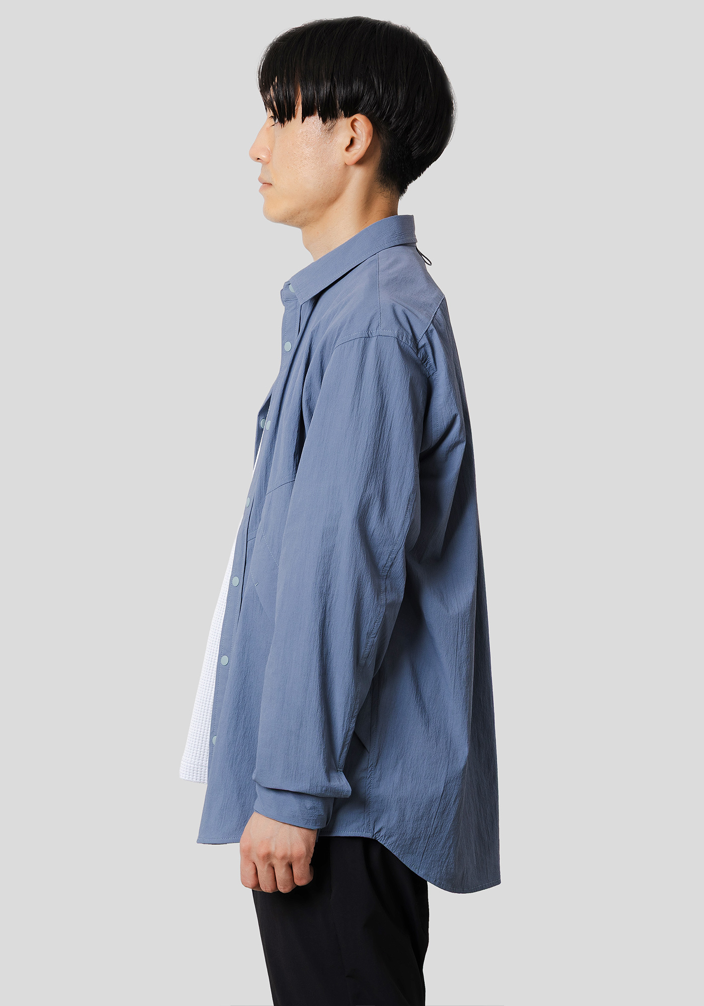 デザインディテールをあえてアウターライクにし、素材を通気性の高いメッシュ素材に落とし込んだシャツ。