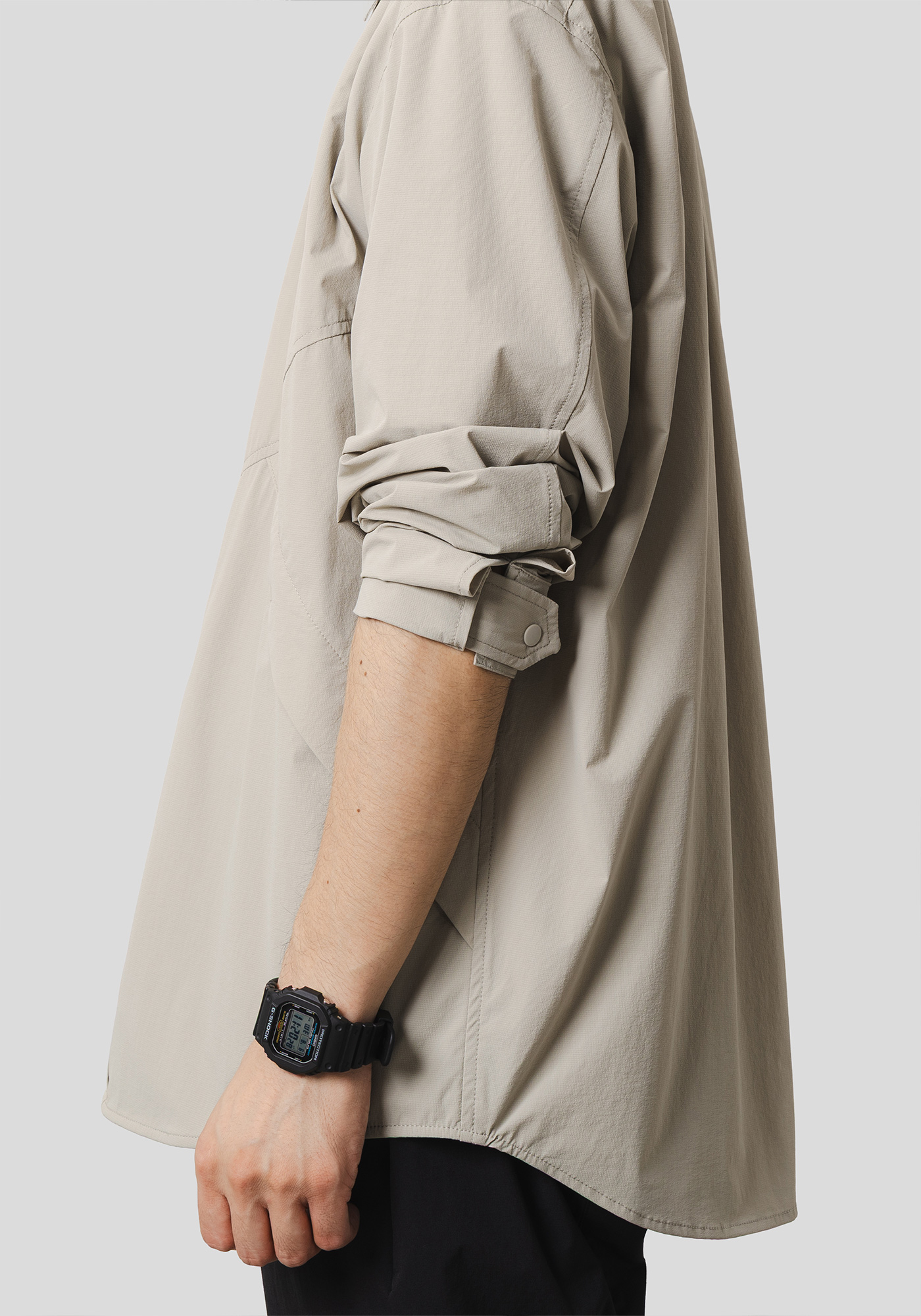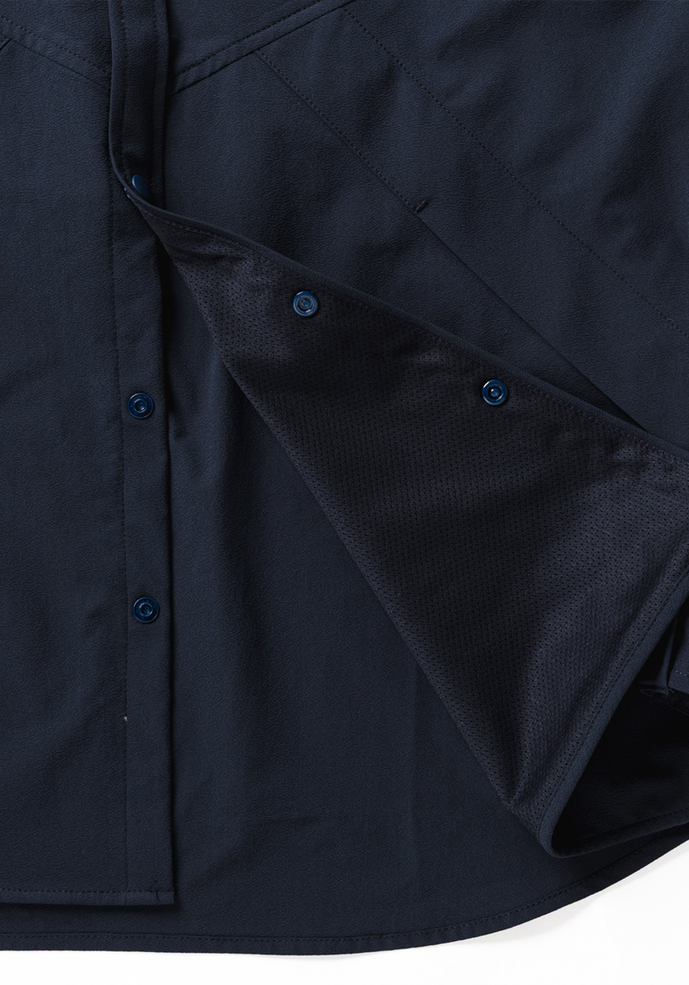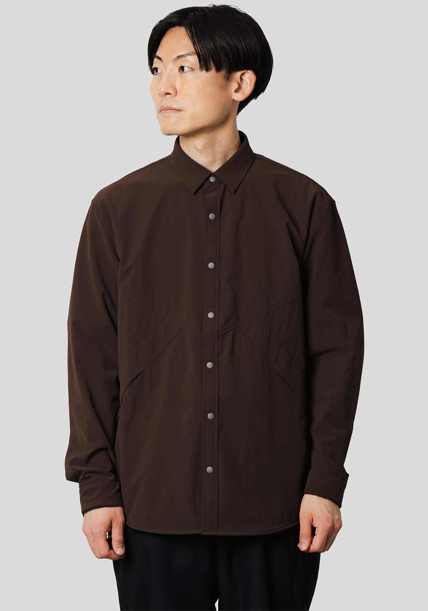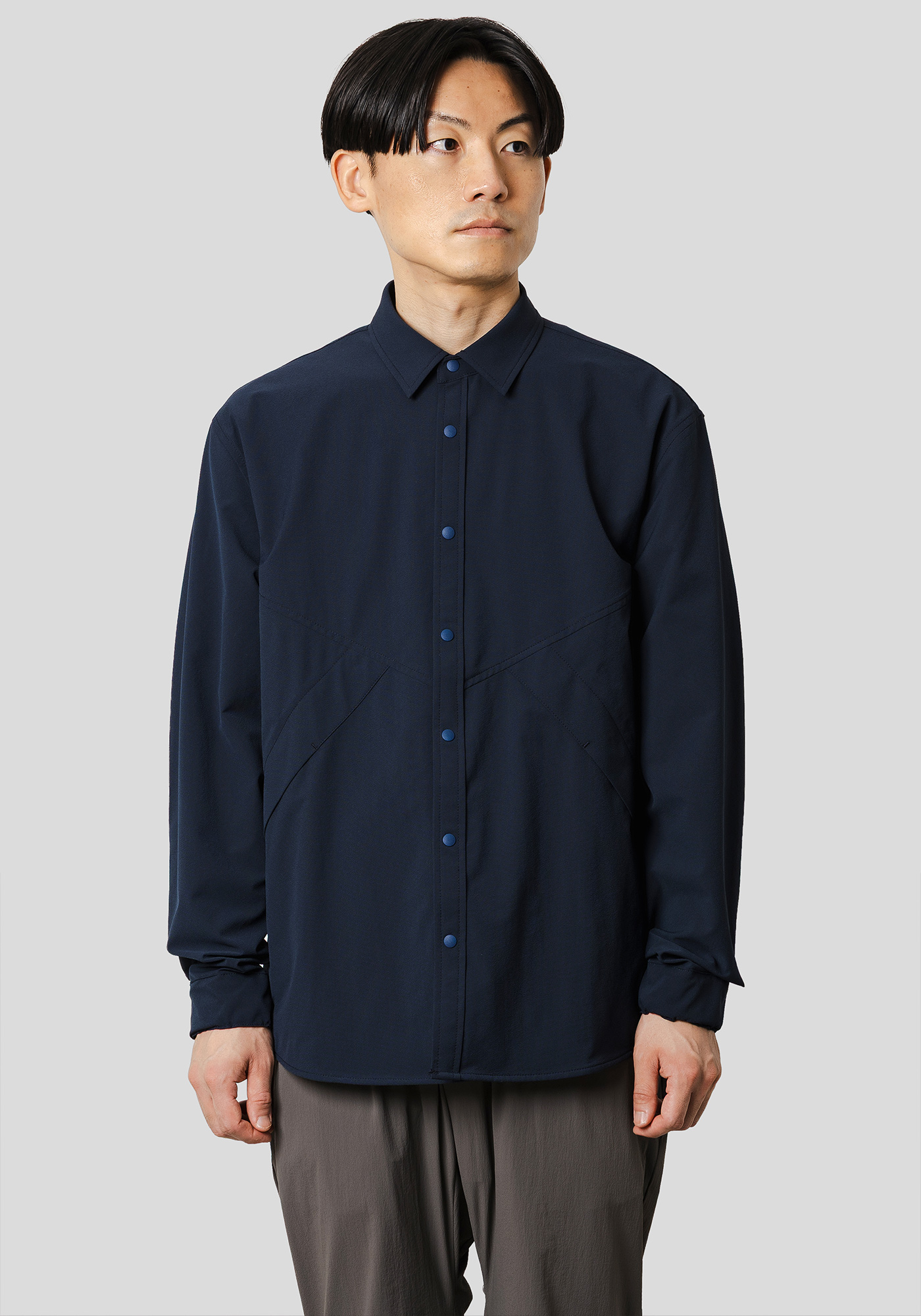 デザインディテールをあえてアウターライクにし、素材を通気性の高いメッシュ素材に落とし込んだシャツ。