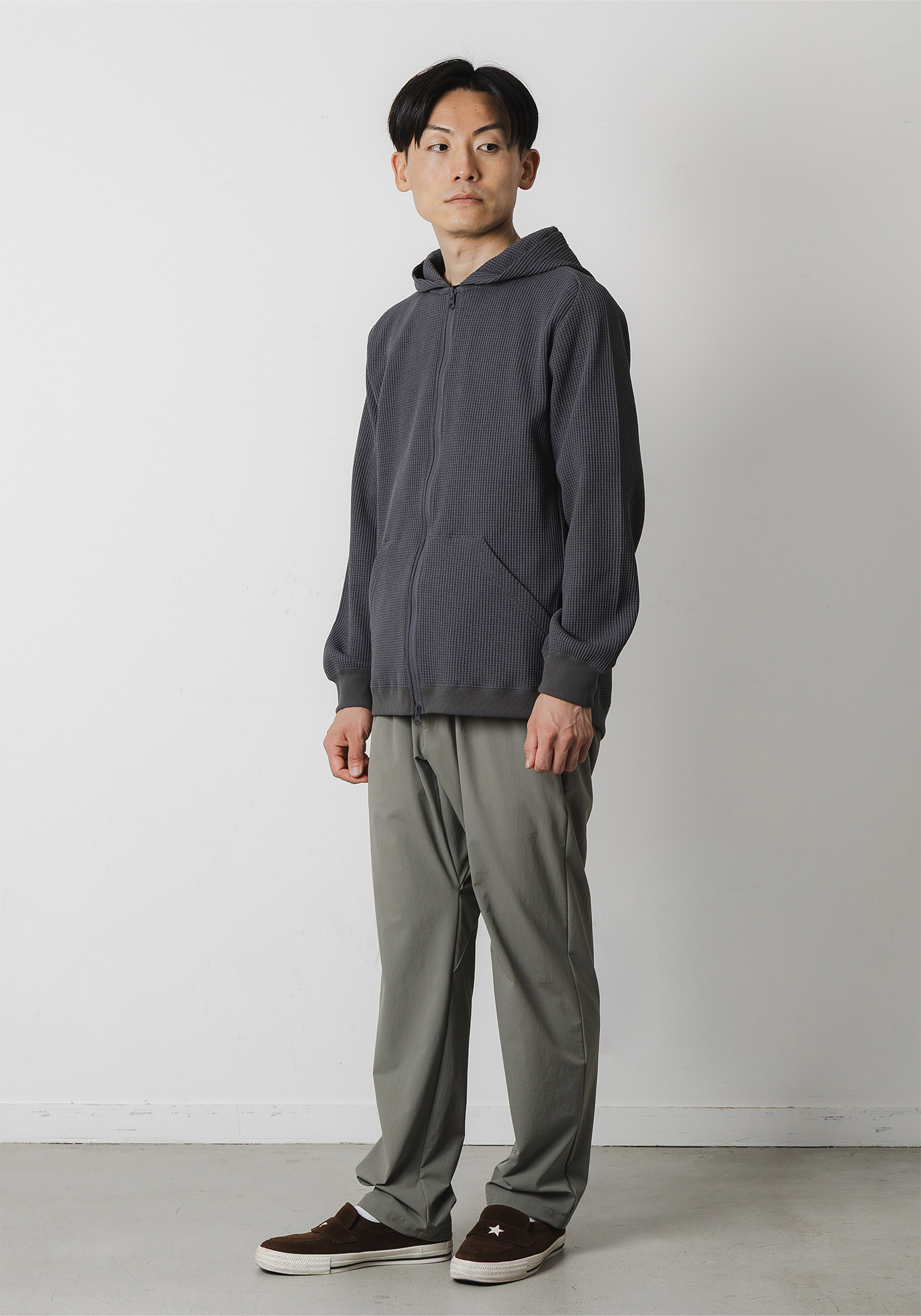 ややゆったりめのシルエットをライド時を考慮してややテーパードシルエットに。