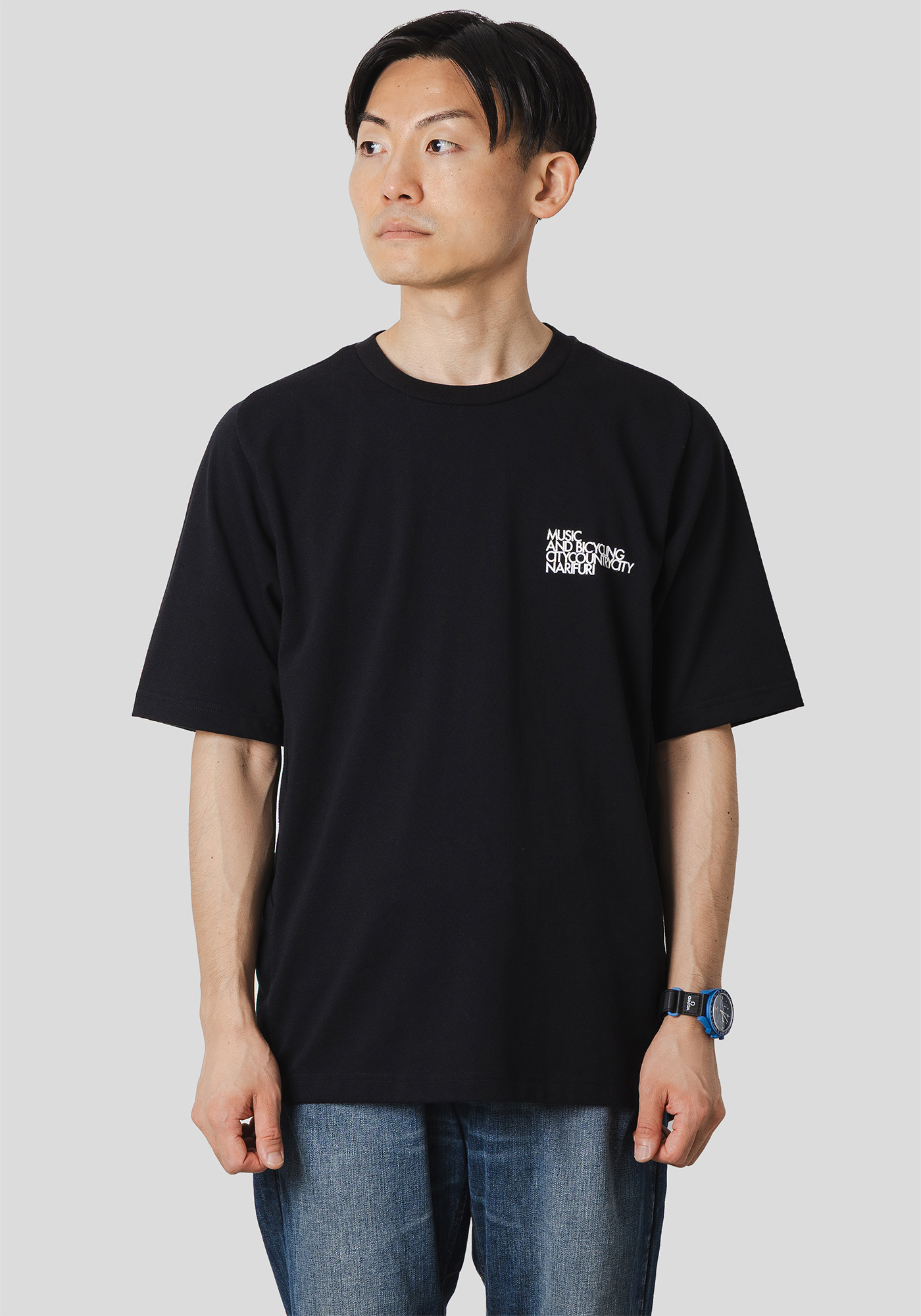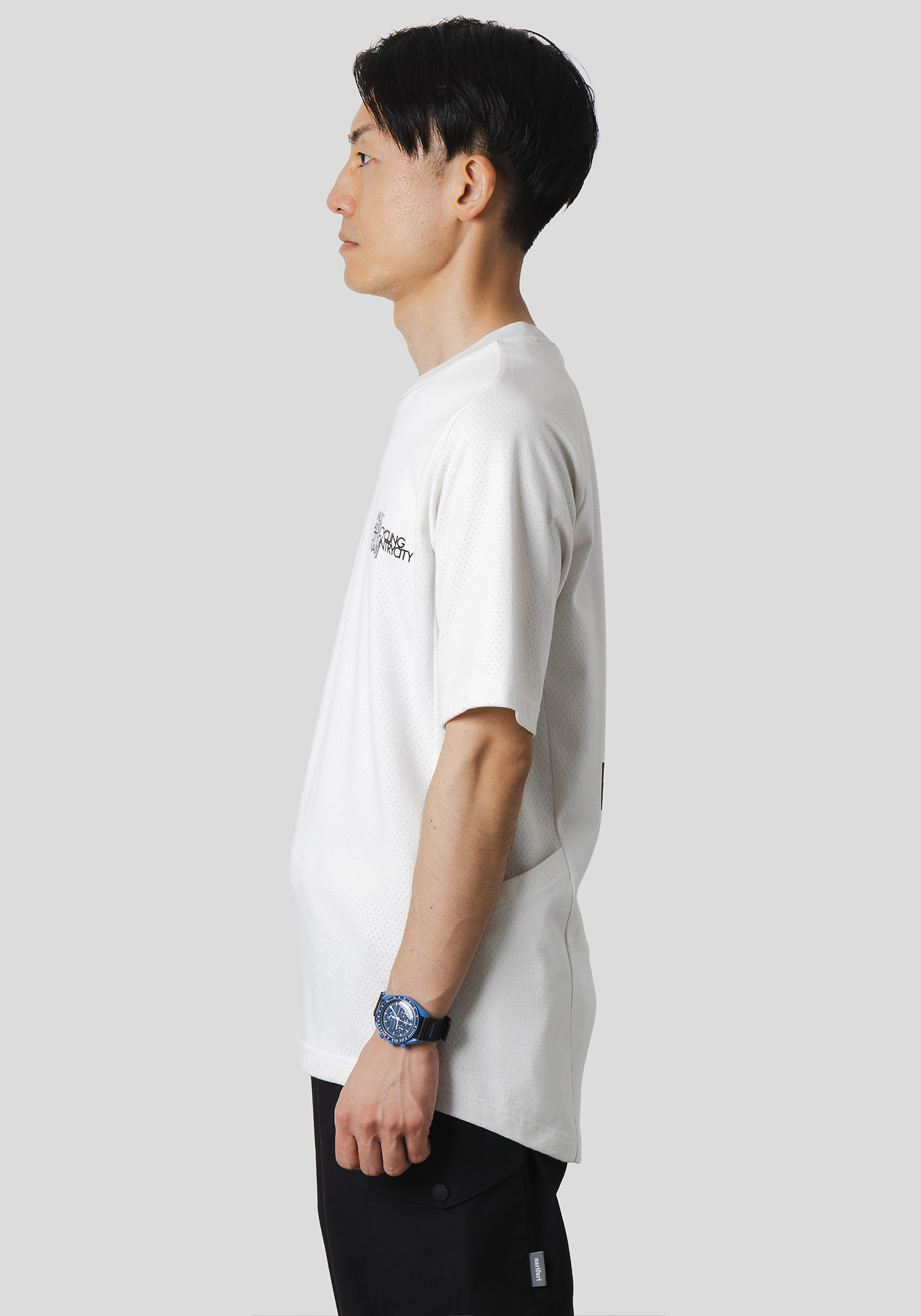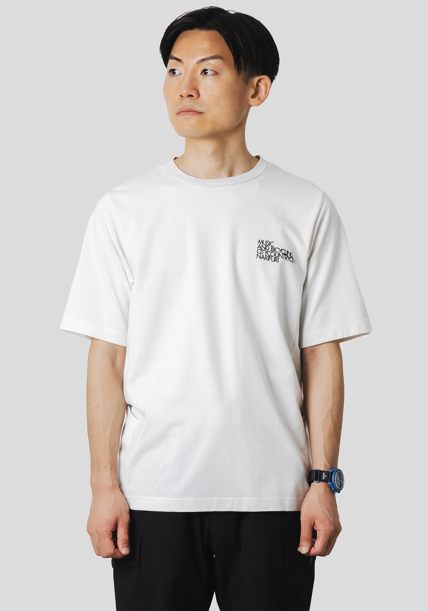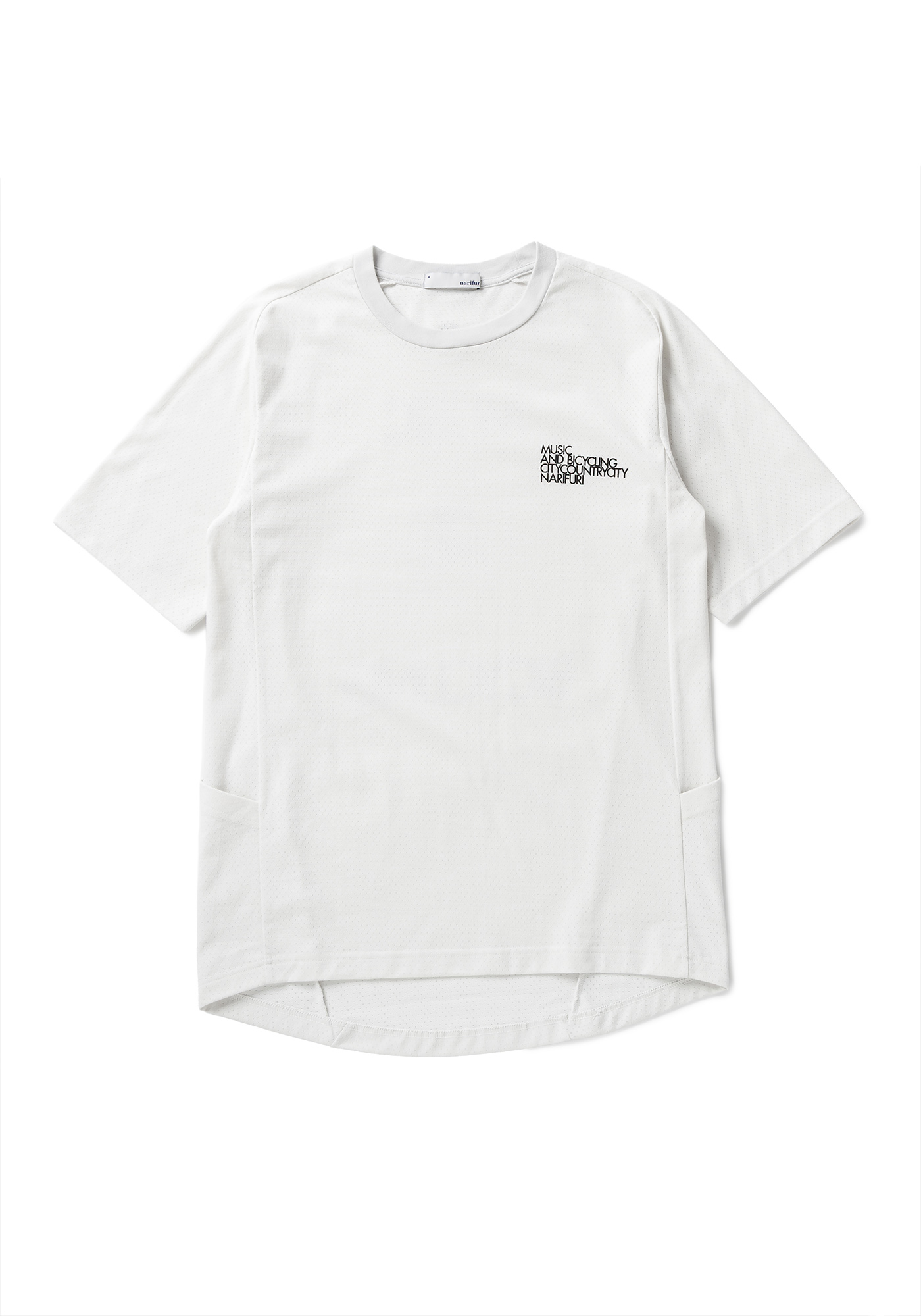 ベースは汗や雨などを素早く乾かし、心地良い風をとりこむnarifuriオリジナル生地「マルチテックメッシュ」を使用したTシャツです。
