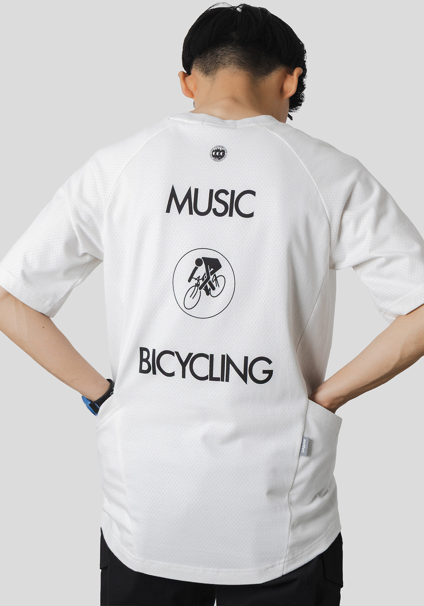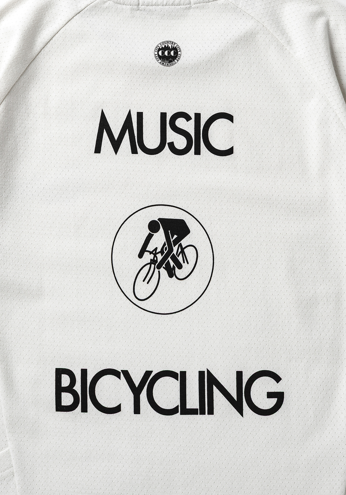 CITY COUNTRY CITYの得意とするミュージックカルチャーとバイシクルカルチャーを融合させたグラフィックとワードが特徴の書き下ろしグラフィックをプリント。