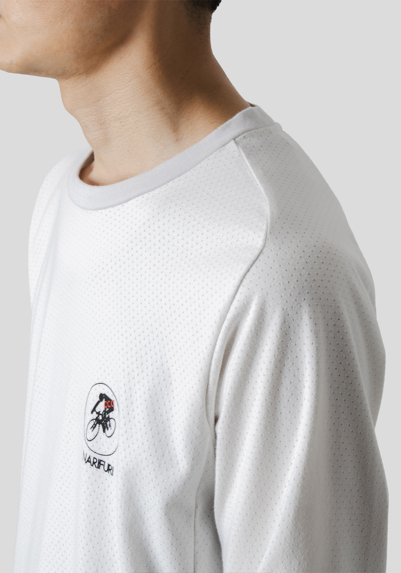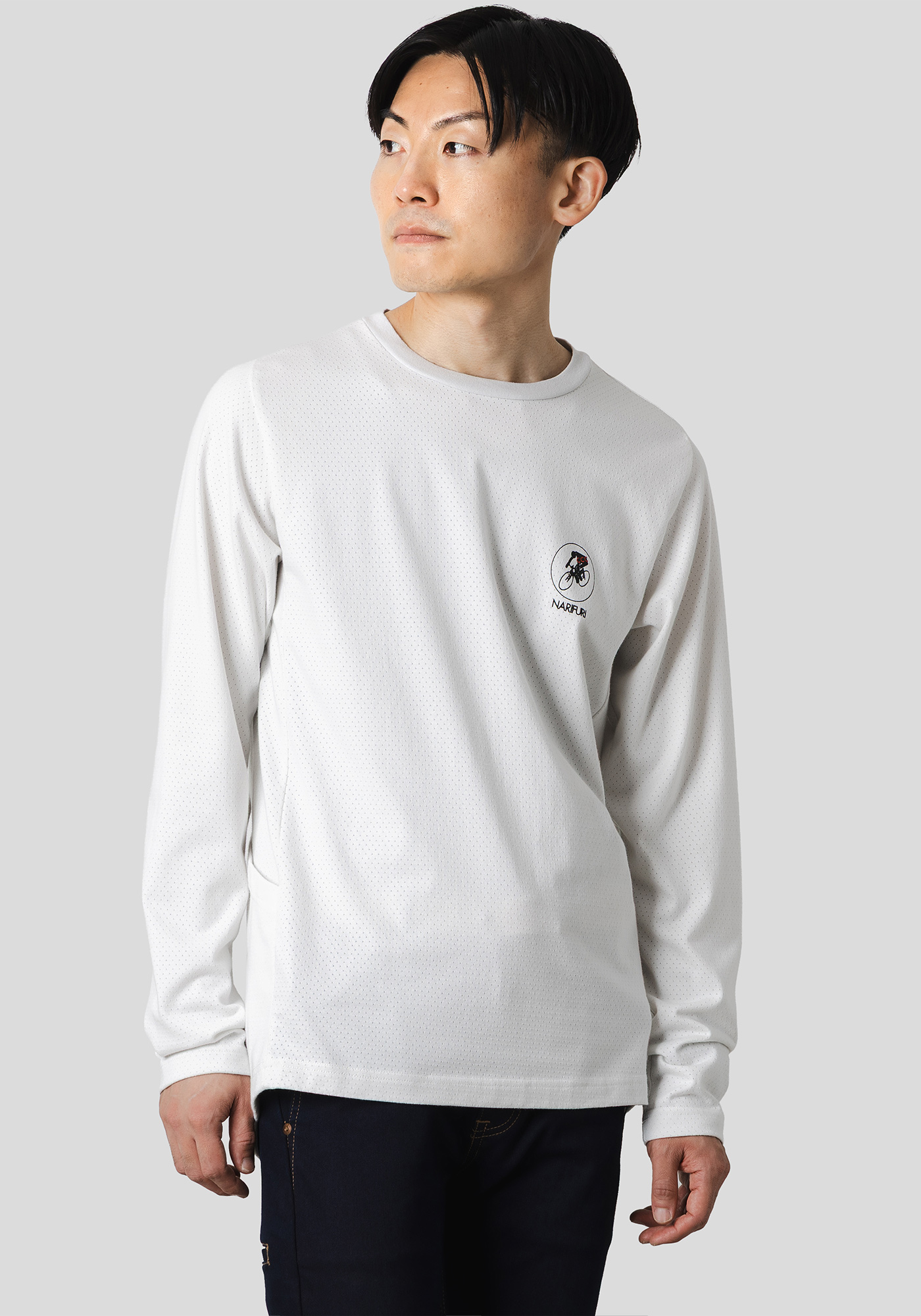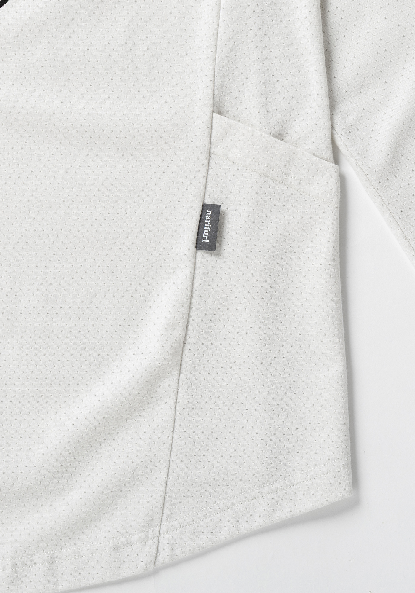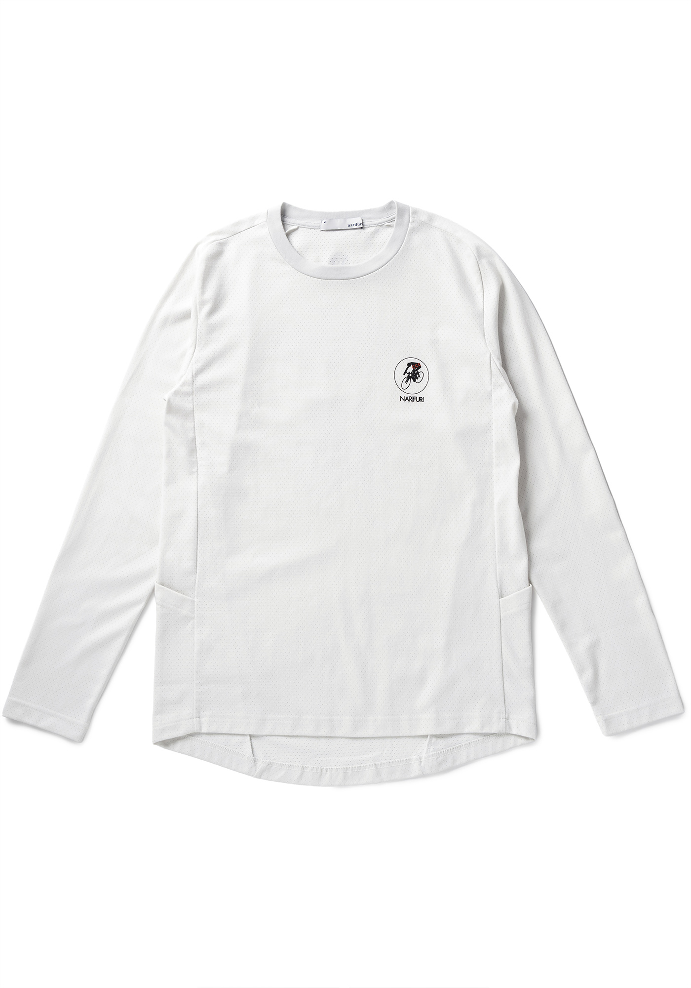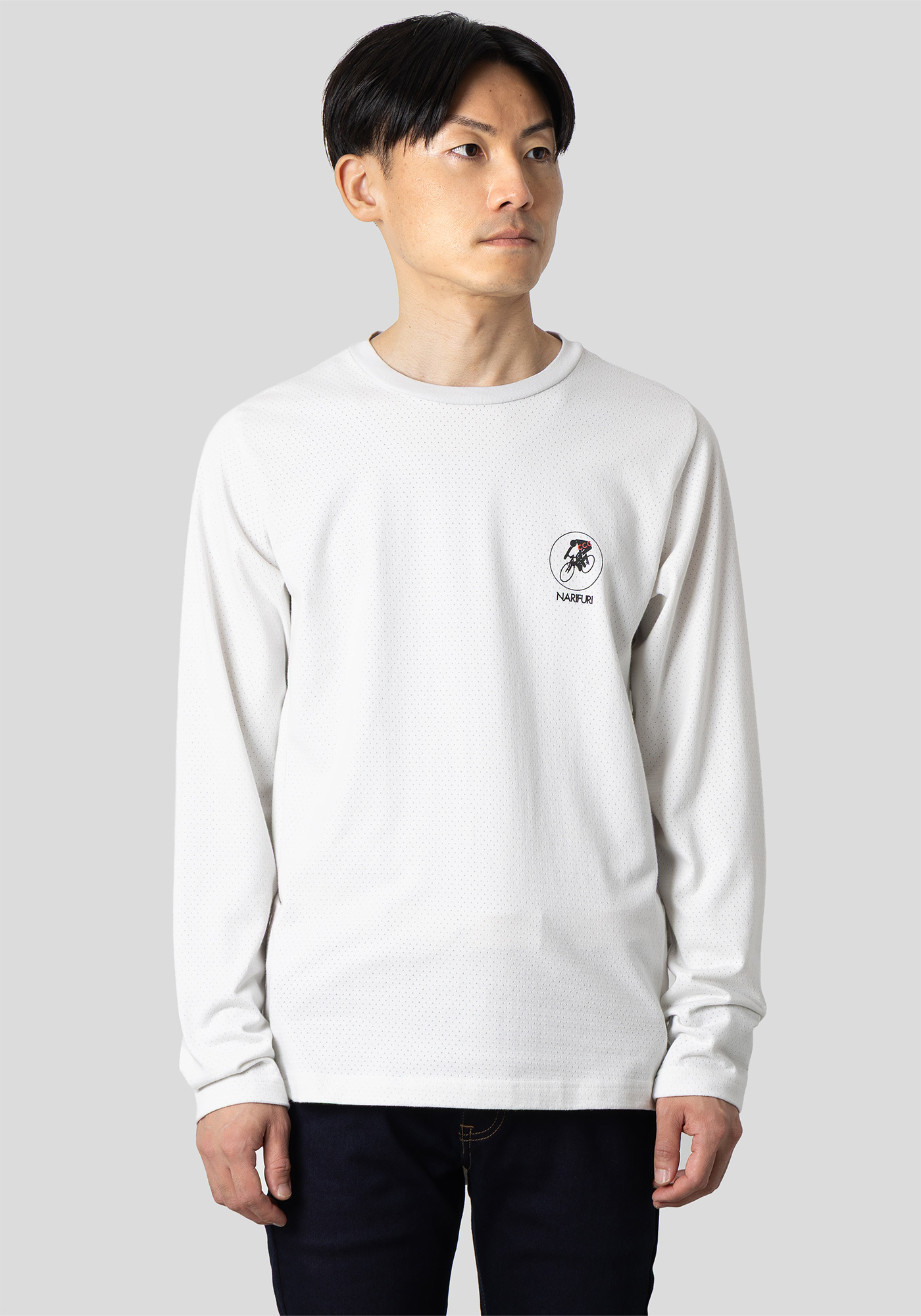 ベースは汗や雨などを素早く乾かし、心地良い風をとりこむnarifuriオリジナル生地「マルチテックメッシュ」を使用した長袖Tシャツです。