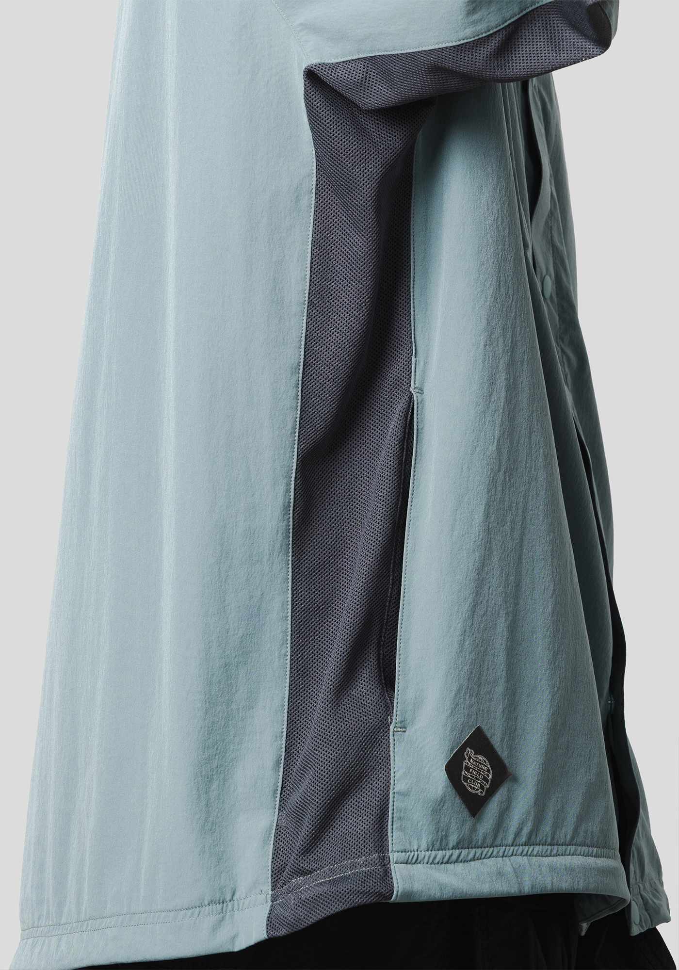 ●脇と袖下メッシュ切替、胸ポケット袋布メッシュ使用、後身頃ベンチレーション仕様により、ラッシュガード着用の際に起こる入水時の衣服の膨らみを軽減します