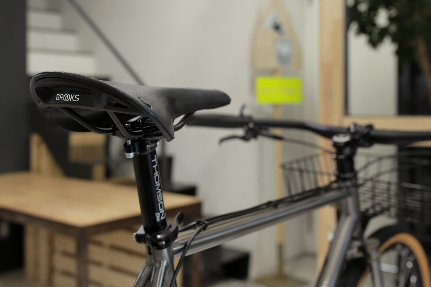 サドルはもはや当店の定番でもあるBROOKS/CAMBIUM All whether C17。汚れにも強いので想定される使用環境でも安心。シートポスト・ステムはブランドを揃えたいのが男心ならば黙ってTHOMSONを採用。MTBが背景にある方であれば尚お誂え向き。