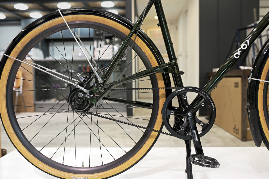ベルトドライブはタフで注油不要のメンテナンスフリー、常にクリーンという点が街乗りにおいてとても相性の良いコンポであると考えていたからです。