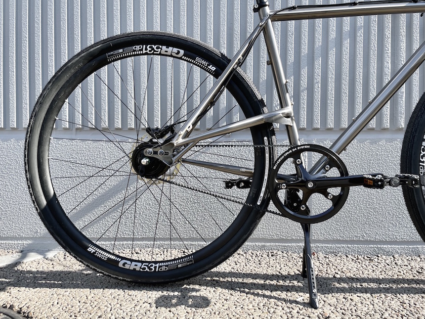 今回お客様からのご要望はベルトドライブで内装変速・街中での使用がメインという事でしたので、CF01オリジナルベルトキットとコンポーネントはSHIMANO ALFINE (11s)を用いてアーバン仕様に。