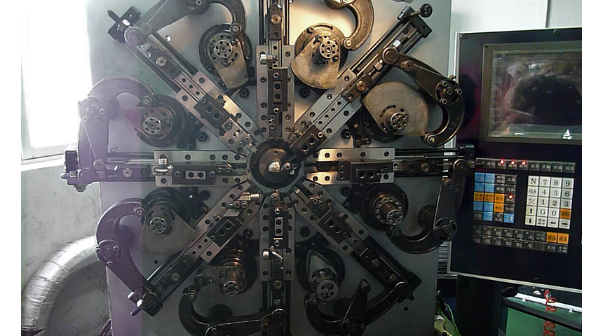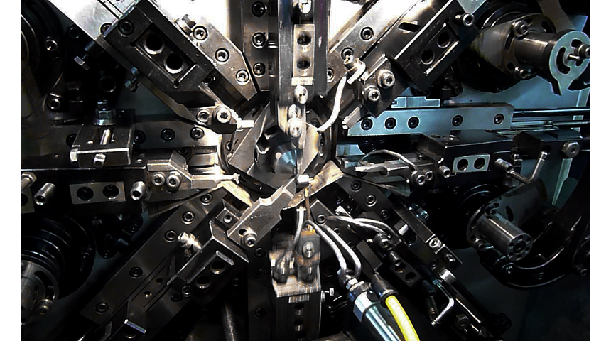 吉原)ラスボスっぽいビジュアルっすよねw これはバネとかピアノ線を成形するのに使う"マルチフォーミングマシン"ていうやつで。こんな感じでロボットアームがウインウインして、硬いピアノ線を立体的に成形してくれるんですよ。