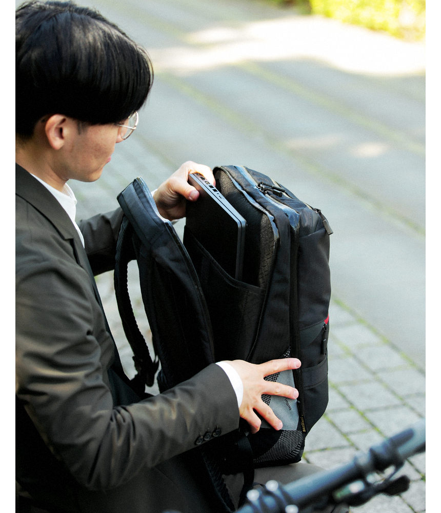 吉原)実はコロナによってリモートワークが増えたことで、ある問題が起きてるんですよ。もともと常にPC持ち運ぶ人は13.3インチが多いんですけど、そうじゃない事務職の人までPCを持ち運ぶ必要が出てきてしまった。そういう人たちは普段15.6インチを使っているから、それがしっかり収納できるというのも今回のポイントだと思いますね。