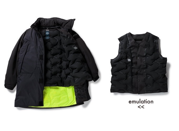 「emulation/エミュレーション」は、羽毛や中綿の代わりに<空気>そのものを遮熱材として考える日本発のブランドです。