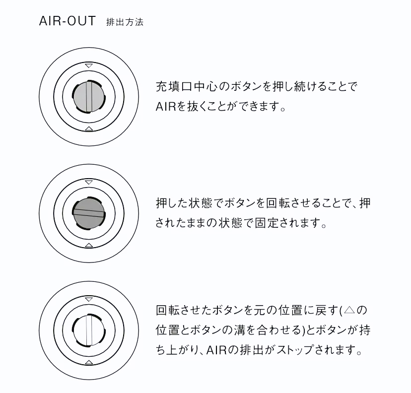 空気を抜くためには充填口を押すだけ。こちらもとても簡単です。