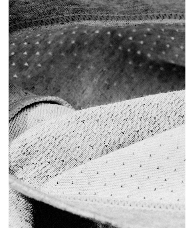 メッシュ生地はサイクリストのための素材だと私たちは感じています。何故ならペダルを回すたびに、吹き抜ける心地好い風を味方につけることができるからです。