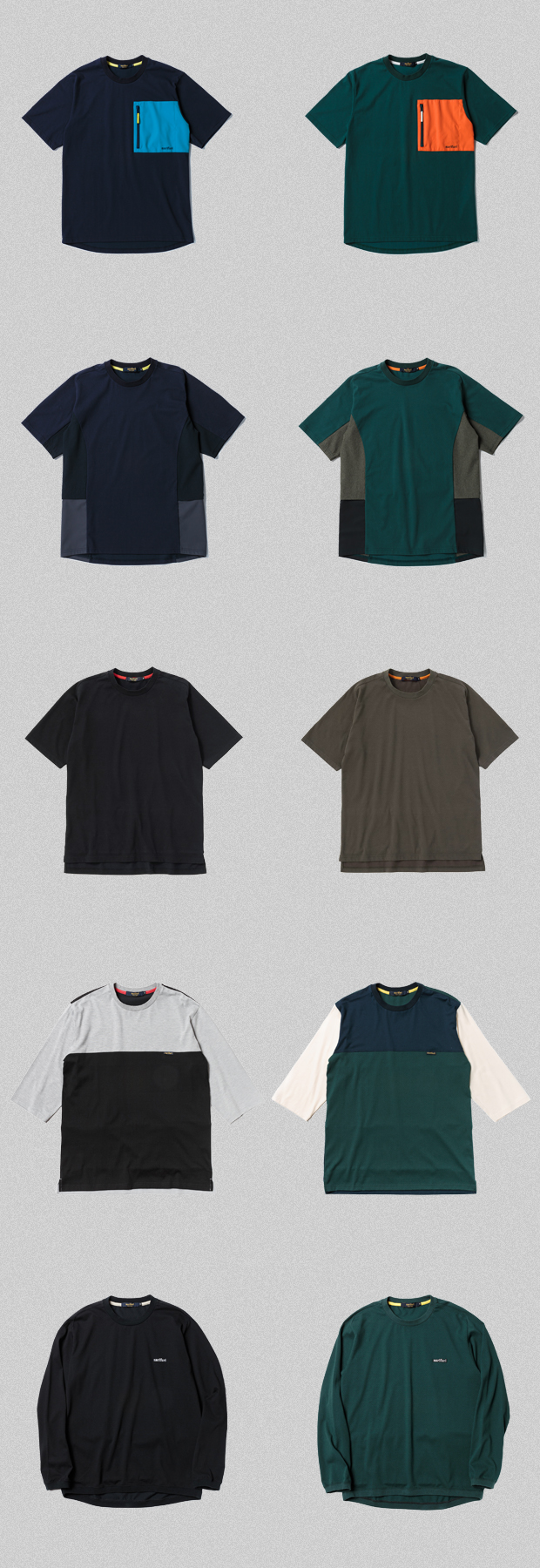 このマルチテックメッシュを採用したカットソーシリーズに、'23シーズンの新作が追加されました。個性豊かな定番品とあわせて、梅雨、そして夏への準備を進めましょう。