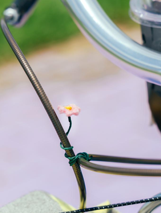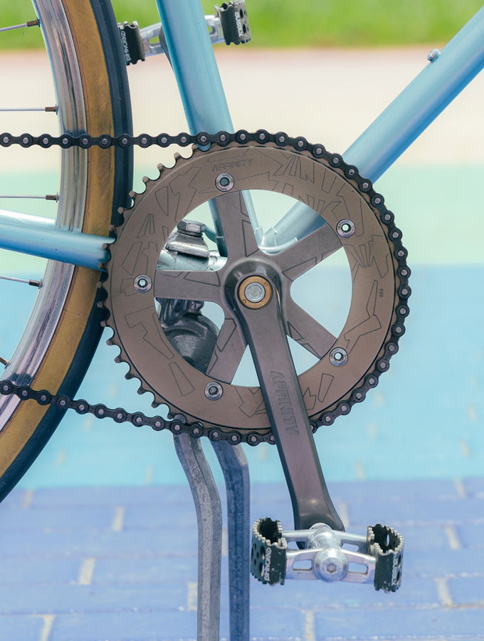 フレームは90年代頃のものと見られるUSED品で、ペイントは恐らく前オーナーのオリジナル。遊び心を重視して、あえてアンバランスなアッセンブルにしたり、栓抜きを2つ装備したりしています。