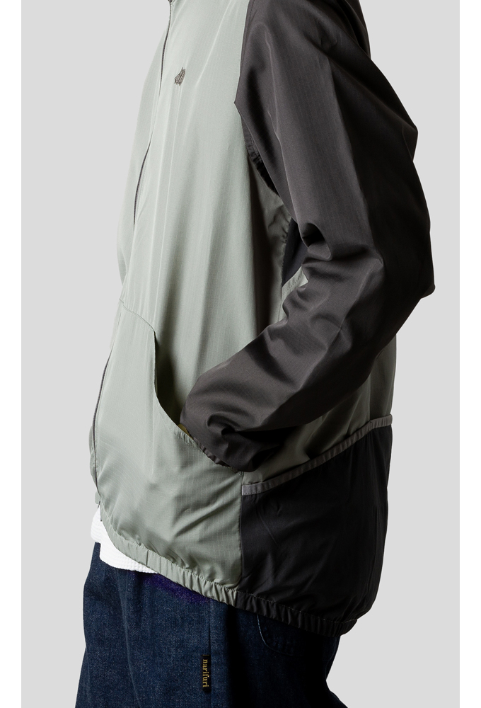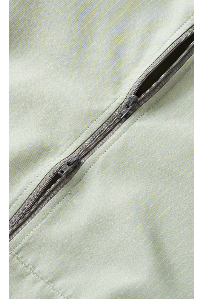5mm角のナイロンリップストップを採用することで、強度・防汚性・撥水力に優れたライトウィンドブレーカーです。軽い着心地とハリのあるドライな肌触りはシーズンの境目に重宝します。