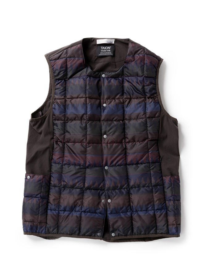 今季はこれまでのコラボレーションで高い評価を得てきたnarifuri×TAIONのアイコニックな”背抜き”仕様のアップデートと、レトロムードな総柄デザインが特徴です。